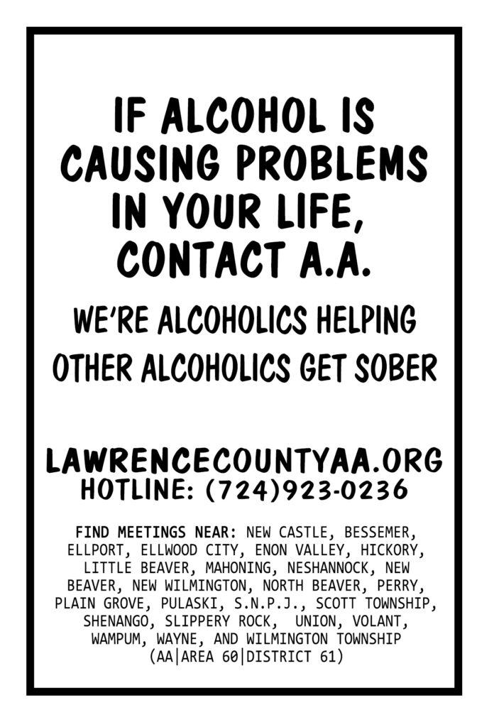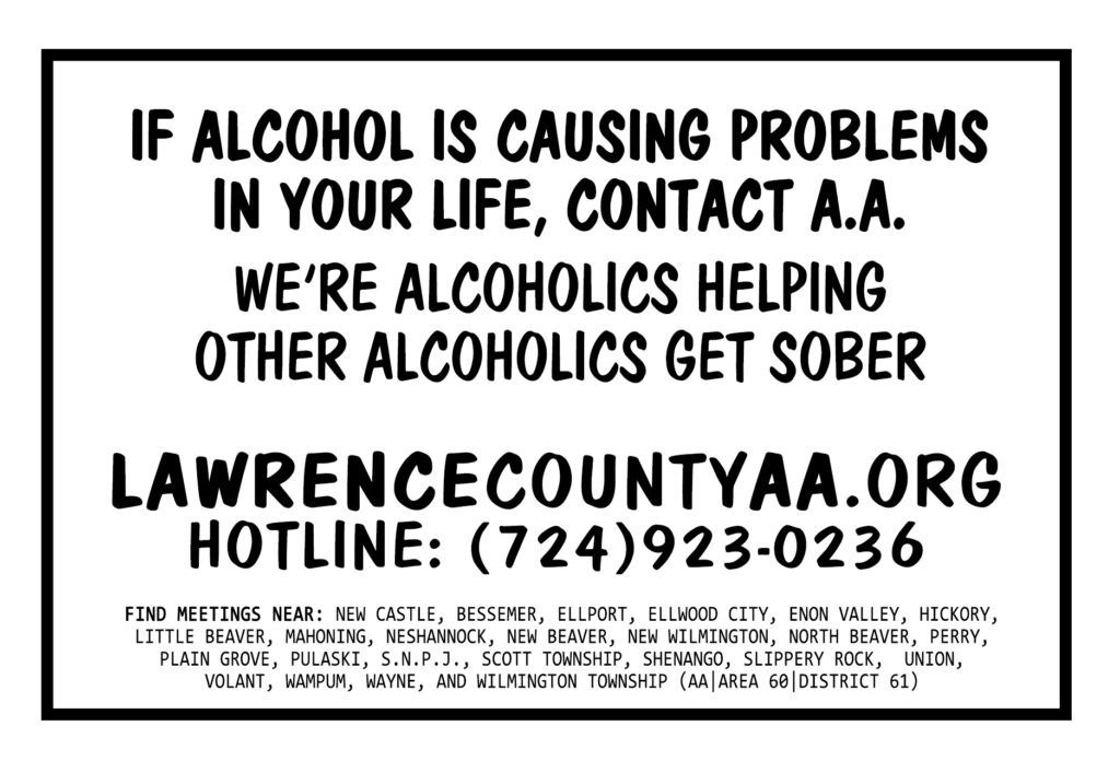 This page provides print-ready materials to support Alcoholics Anonymous efforts in Lawrence County, PA.